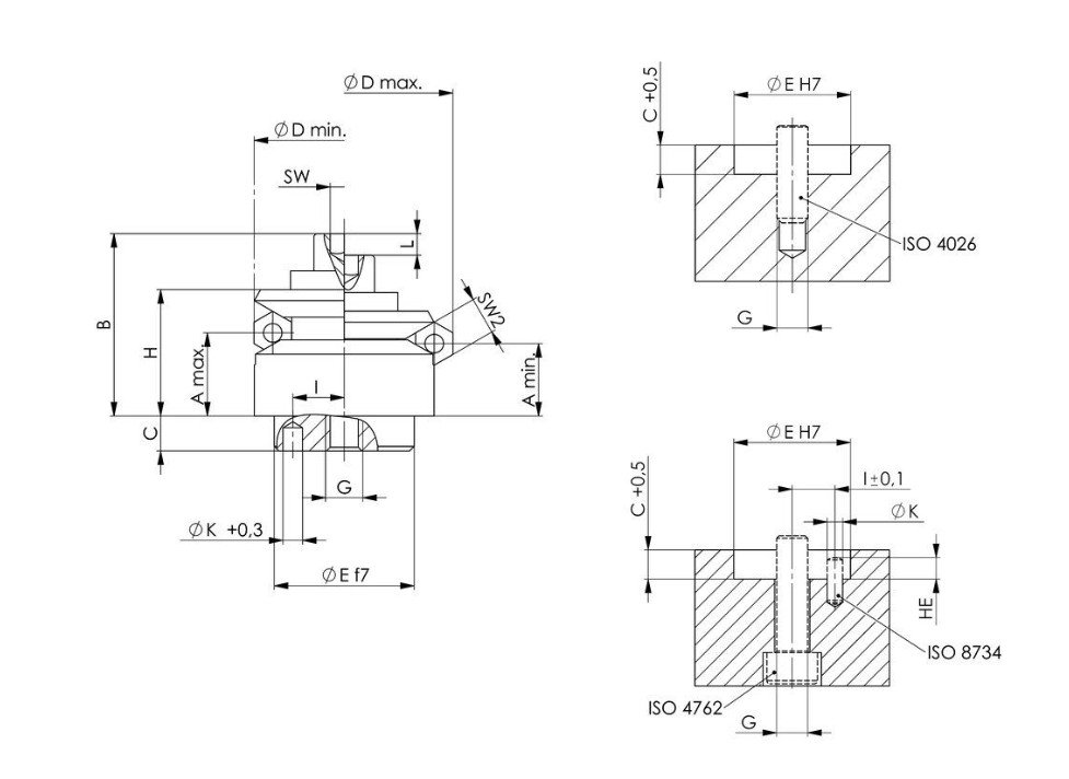 Středicí svorka s ochrannými segmenty je určena pro přesné centrické polohování a upínání v otvorech při zachování ochrany povrchu obrobku. Pro hlubokou instalaci je nutné zajistit maximální vůli D.