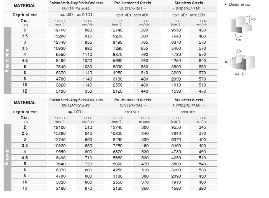 Základem je také kvalitní materiál se speciálním výbrusem pro obrábění materiálů do tvrdosti 60HRC. Vzhledem k náročnosti obrábění a tvrdosti obráběného materiálu je pro frézy používán substrát o velikosti zrna 0,5µm s vysokou odolností vůči lomu a současně vynikající odolností vůči opotřebení.