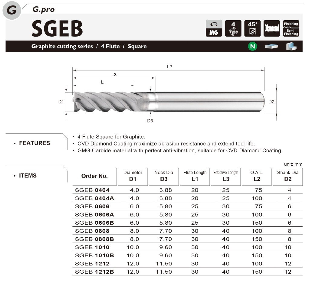 Vyrobena z karbidového materiálu GMG s výbornými antivibračními vlastnostmi, ideální pro nanášení CVD diamantového povlaku a práci v náročných podmínkách.