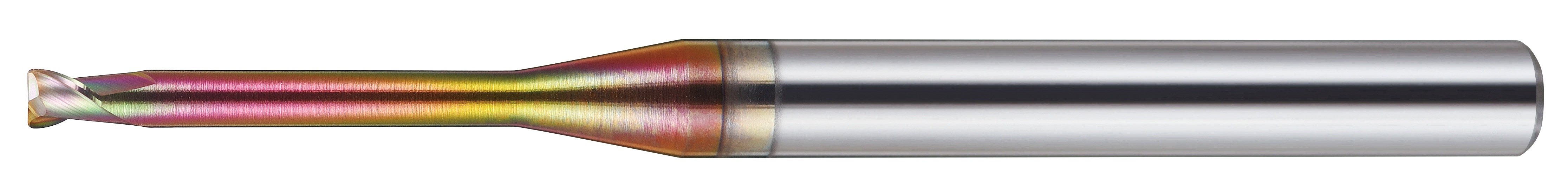 Dlouhá 2břitá kulová fréza pro HRC60. Poloměr R 1,0–R3,0 mm s efektivní délkou 6–25 mm. Vynikající pro frézování žeber.