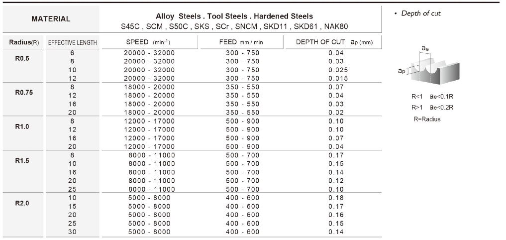 Základem je také kvalitní materiál se speciálním výbrusem pro obrábění materiálů do tvrdosti 55HRC. Vzhledem k náročnosti obrábění a tvrdosti obráběného materiálu je pro frézy používán substrát o velikosti zrna 0,6µm s extrémně vysokou odolností vůči lomu a současně vynikající odolností vůči opotřebení.