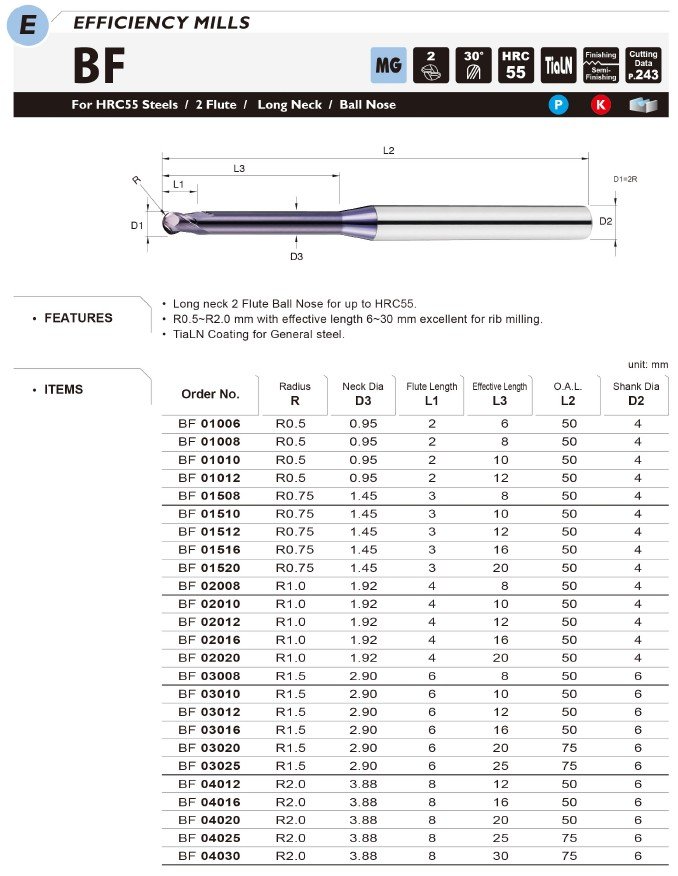 Fréza s dlouhou stopkou pro větší hloubku řezu. Technologie povlakování TiaLN se vyznačuje tepelnou odolností a to do 800 °C a odolností proti tření. Díky povlaku TiaLN je nástroj ideální pro nízko a vysokolegovanou ocel, litou ocel, nástrojovou ocel a litinu.