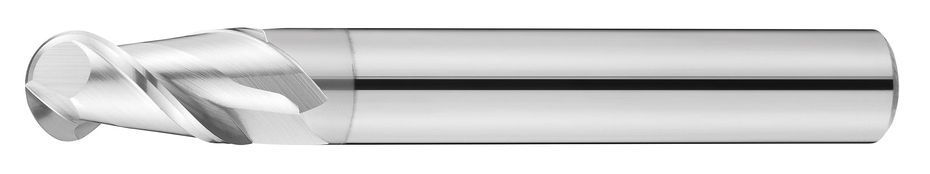 Dvoubřitá kulová fréza určená pro obrábění hliníkových slitin, duralu a dalších materiálů na bázi hliníku.