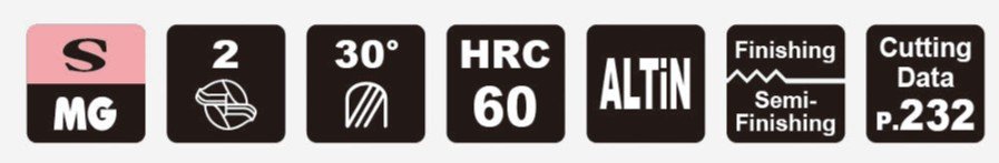 Základem je také kvalitní materiál se speciálním výbrusem pro obrábění materiálů do tvrdosti 60HRC. Vzhledem k náročnosti obrábění a tvrdosti obráběného materiálu je pro frézy používán substrát o velikosti zrna 0,5µm s vysokou odolností vůči lomu a současně vynikající odolností vůči opotřebení.