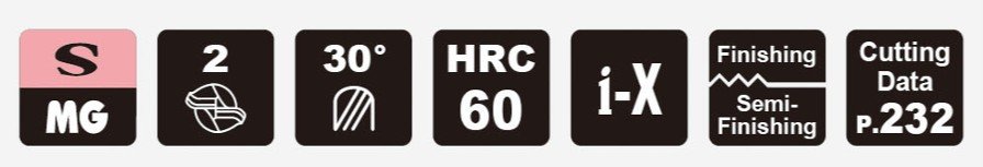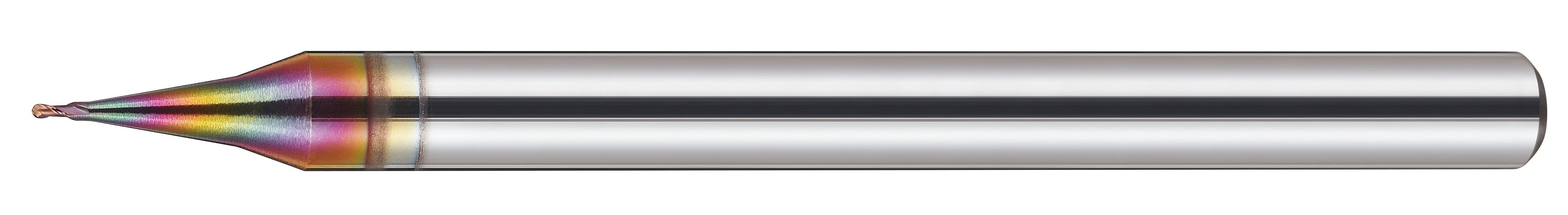 Tato mikroprůměrová dvoubřitá kulová fréza je určena pro obrábění materiálů s tvrdostí až do HRC60. Nabízí rozmezí rádiusů od R0,1 do R1 mm, což ji činí vhodnou pro přesné obrábění při běžném použití.