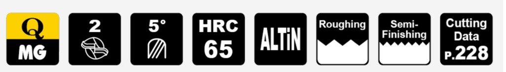 Základem je také kvalitní materiál se speciálním výbrusem pro obrábění materiálů do tvrdosti 65HRC. Vzhledem k náročnosti obrábění a tvrdosti obráběného materiálu je pro frézy používán nejjemnější substrát o velikosti zrna 0,2µm s extrémně vysokou odolností vůči lomu a současně vynikající odolností vůči opotřebení.