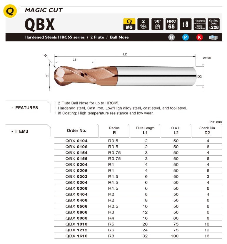 Základem je také kvalitní materiál se speciálním výbrusem pro obrábění materiálů do tvrdosti 65HRC. Vzhledem k náročnosti obrábění a tvrdosti obráběného materiálu je pro frézy používán nejjemnější substrát o velikosti zrna 0,2µm s extrémně vysokou odolností vůči lomu a současně vynikající odolností vůči opotřebení.