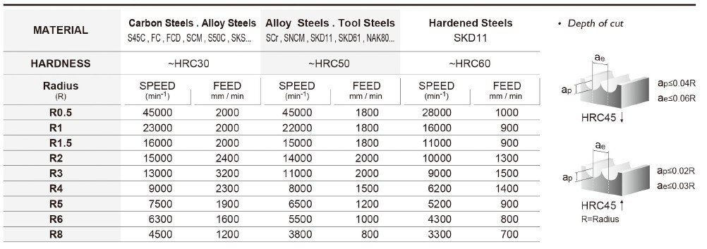 Základem je také kvalitní materiál se speciálním výbrusem pro obrábění materiálů do tvrdosti 60HRC. Vzhledem k náročnosti obrábění a tvrdosti obráběného materiálu je pro frézy SB používán substrát o velikosti zrna 0,5µm s vysokou odolností vůči lomu a současně vynikající odolností vůči opotřebení.