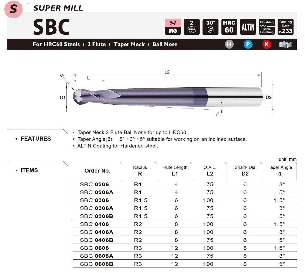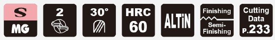 Základem je také kvalitní materiál se speciálním výbrusem pro obrábění materiálů do tvrdosti 60HRC. Vzhledem k náročnosti obrábění a tvrdosti obráběného materiálu je pro frézy používán substrát o velikosti zrna 0,5µm s vysokou odolností vůči lomu a současně vynikající odolností vůči opotřebení.