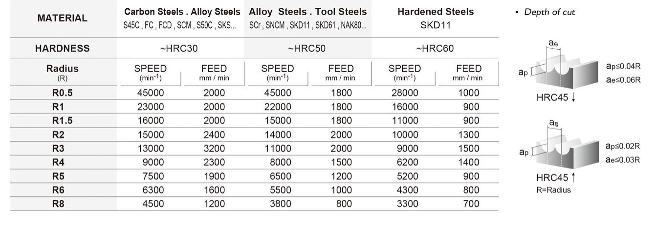 Kopírovací dvoubřitá fréza pro obrábění materiálů s tvrdostí až do HRC 60. Je vhodný pro kalenou ocel, litinu, nízko- i vysokolegovanou ocel, lité oceli a nástrojovou ocel. Technologie povlakování G100 se vyznačuje tepelnou odolností a to do 800 °C.