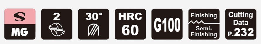 Kopírovací dvoubřitá fréza pro obrábění materiálů s tvrdostí až do HRC 60. Je vhodný pro kalenou ocel, litinu, nízko- i vysokolegovanou ocel, lité oceli a nástrojovou ocel. Technologie povlakování G100 se vyznačuje tepelnou odolností a to do 800 °C.