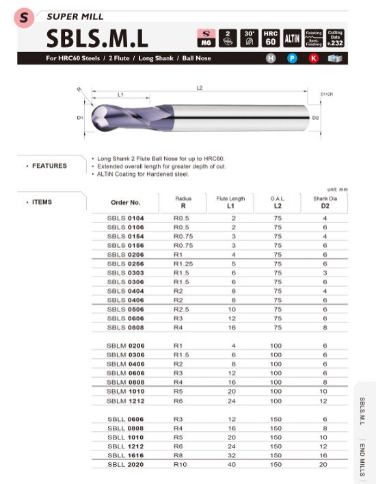 Základem je také kvalitní materiál se speciálním výbrusem pro obrábění materiálů do tvrdosti 60HRC. Vzhledem k náročnosti obrábění a tvrdosti obráběného materiálu je pro frézy používán substrát o velikosti zrna 0,5µm s vysokou odolností vůči lomu a současně vynikající odolností vůči opotřebení.