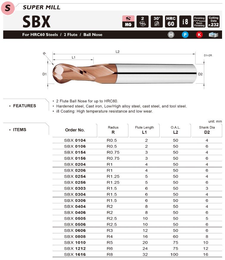 Základem je také kvalitní materiál se speciálním výbrusem pro obrábění materiálů do tvrdosti 60HRC. Vzhledem k náročnosti obrábění a tvrdosti obráběného materiálu je pro frézy používán substrát o velikosti zrna 0,5µm s vysokou odolností vůči lomu a současně vynikající odolností vůči opotřebení.