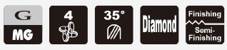 Čtyřbřitá fréza speciálně navržená pro obrábění grafitu. Je opatřena CVD diamantovým povlakem, který výrazně zvyšuje odolnost proti opotřebení a prodlužuje životnost nástroje.