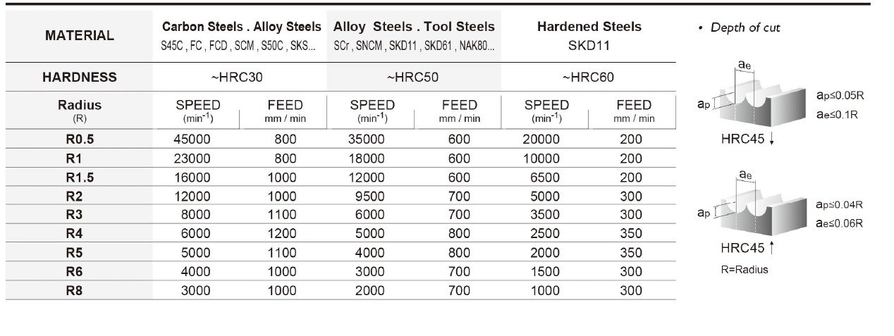 Základem je také kvalitní materiál se speciálním výbrusem pro obrábění materiálů do tvrdosti 55HRC. Vzhledem k náročnosti obrábění a tvrdosti obráběného materiálu je pro frézy BLM používán substrát o velikosti zrna 0,6µm s extrémně vysokou odolností vůči lomu a současně vynikající odolností vůči opotřebení.