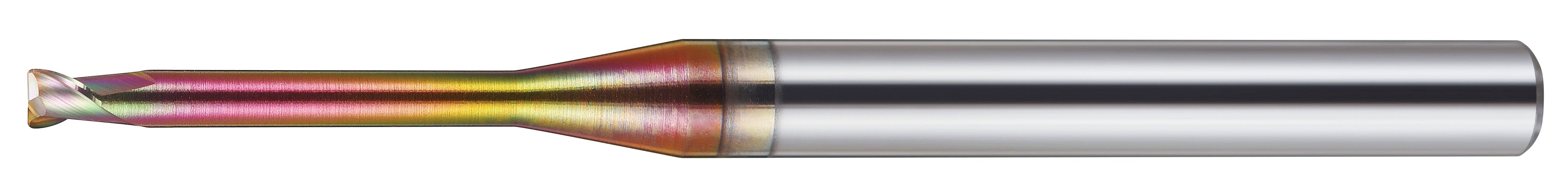 Dvoubřitá čelní fréza s dlouhým krkem ( odlehčením ) je určena pro obrábění kalené oceli až do tvrdosti HRC65. Nabízí průměry v rozsahu 0,5–3,0 mm a efektivní délku řezu 4–25 mm.
