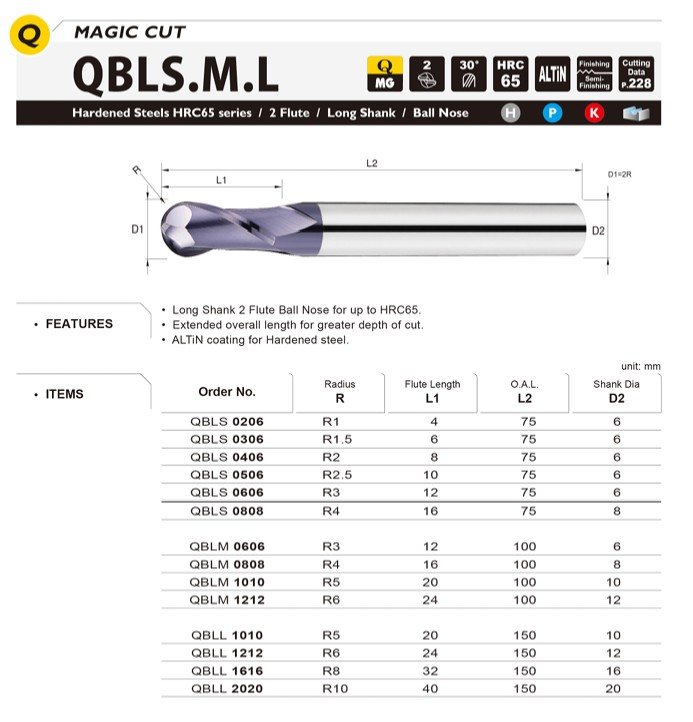 Základem je také kvalitní materiál se speciálním výbrusem pro obrábění materiálů do tvrdosti 65HRC. Vzhledem k náročnosti obrábění a tvrdosti obráběného materiálu je pro frézy používán nejjemnější substrát o velikosti zrna 0,2µm s extrémně vysokou odolností vůči lomu a současně vynikající odolností vůči opotřebení.