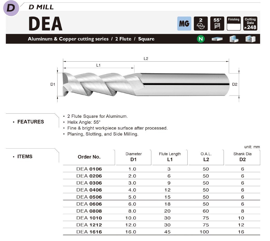 Frézy typu DEA jsou vyrobeny ze substrátu s jemnou velikostí zrna 0,6 µm, což přispívá k vyšší odolnosti a dlouhé životnosti nástroje.