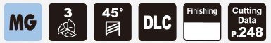 Povlak DLC zajišťuje vysokou tepelnou vodivost a nízký koeficient tření, což přispívá k vyšší životnosti nástroje a kvalitnímu opracování. Úhel šroubovice 45° umožňuje efektivní odvod třísek a plynulé obrábění.