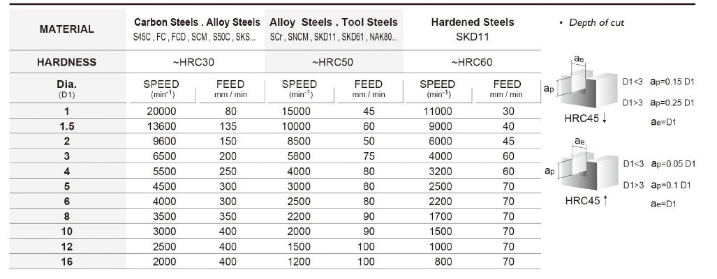 Základem je také kvalitní materiál se speciálním výbrusem pro obrábění materiálů do tvrdosti 55HRC. Vzhledem k náročnosti obrábění a tvrdosti obráběného materiálu je pro frézy EA používán substrát o velikosti zrna 0,6µm s odolností vůči lomu a současně vynikající odolností vůči opotřebení.