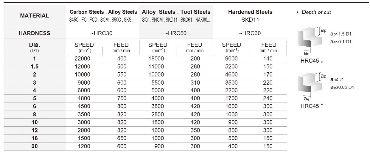 Základem je také kvalitní materiál se speciálním výbrusem pro obrábění materiálů do tvrdosti 55HRC. Vzhledem k náročnosti obrábění a tvrdosti obráběného materiálu je pro frézy EB používán substrát o velikosti zrna 0,6µm s extrémně vysokou odolností vůči lomu a současně vynikající odolností vůči opotřebení.