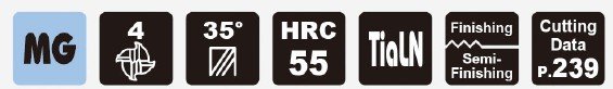 Základem je také kvalitní materiál se speciálním výbrusem pro obrábění materiálů do tvrdosti 55HRC. Vzhledem k náročnosti obrábění a tvrdosti obráběného materiálu je pro frézy EB používán substrát o velikosti zrna 0,6µm s extrémně vysokou odolností vůči lomu a současně vynikající odolností vůči opotřebení.