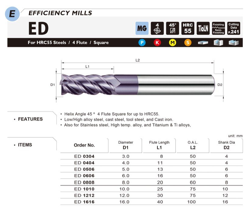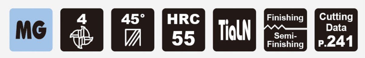 Základem je také kvalitní materiál se speciálním výbrusem pro obrábění materiálů do tvrdosti 55HRC. Vzhledem k náročnosti obrábění a tvrdosti obráběného materiálu je pro frézy používán substrát o velikosti zrna 0,6µm s extrémně vysokou odolností vůči lomu a současně vynikající odolností vůči opotřebení.