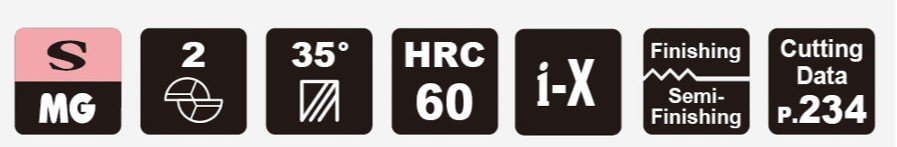 Tato mikroprůměrová dvoubřitá kulová fréza je určena pro obrábění materiálů s tvrdostí až do HRC60. Nabízí rozmezí rádiusů od R0,2 do R1,8 mm, což ji činí vhodnou pro přesné obrábění při běžném použití.