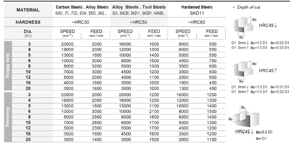 Základem je také kvalitní materiál se speciálním výbrusem pro obrábění materiálů do tvrdosti 65HRC. Vzhledem k náročnosti obrábění a tvrdosti obráběného materiálu je pro frézy QEBN používán nejjemnější substrát o velikosti zrna 0,2µm s extrémně vysokou odolností vůči lomu a současně vynikající odolností vůči opotřebení.