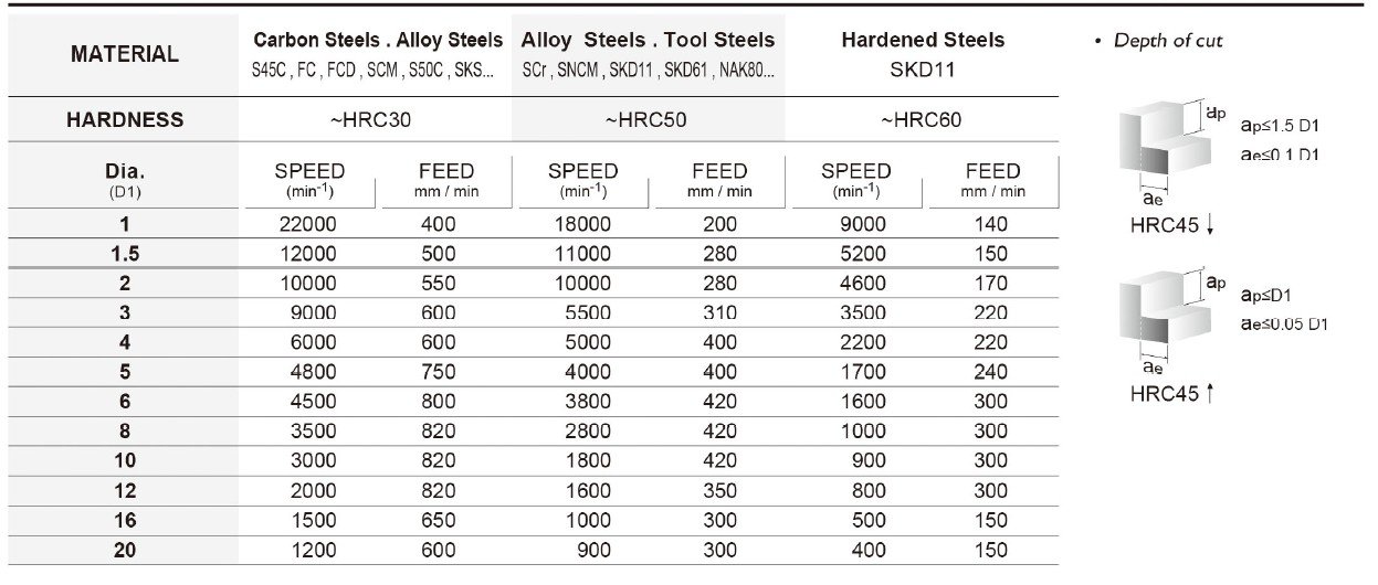 Základem je také kvalitní materiál se speciálním výbrusem pro obrábění materiálů do tvrdosti 60HRC. Vzhledem k náročnosti obrábění a tvrdosti obráběného materiálu je pro frézy SEB používán substrát o velikosti zrna 0,5µm s vysokou odolností vůči lomu a současně vynikající odolností vůči opotřebení.
