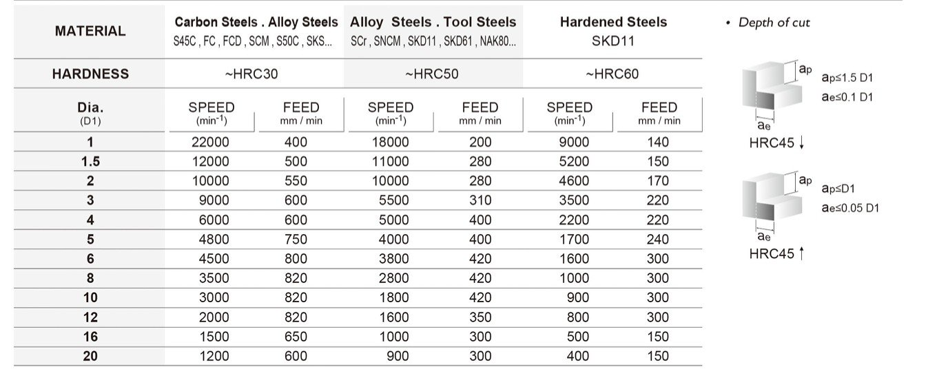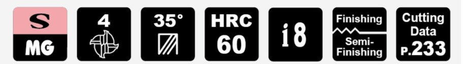Základem je také kvalitní materiál se speciálním výbrusem pro obrábění materiálů do tvrdosti 60HRC. Vzhledem k náročnosti obrábění a tvrdosti obráběného materiálu je pro frézy používán substrát o velikosti zrna 0,5µm s vysokou odolností vůči lomu a současně vynikající odolností vůči opotřebení.
