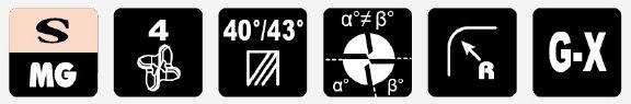 Čelní fréza pro nerezovou ocel titanové slitiny a žáruvzdorné slitiny. Technologie povlakování G-X se vyznačuje tepelnou odolností a to do 1000 °C a odolností proti tření.