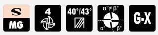 Čtyřbřitá čelní fréza pro nerezovou ocel, titanové slitiny a žáruvzdorné slitiny. Technologie povlakování G-X se vyznačuje tepelnou odolností a to do 1000 °C a odolností proti tření. Prodloužená délka břitů 5D – vhodná pro hluboké boční frézování.