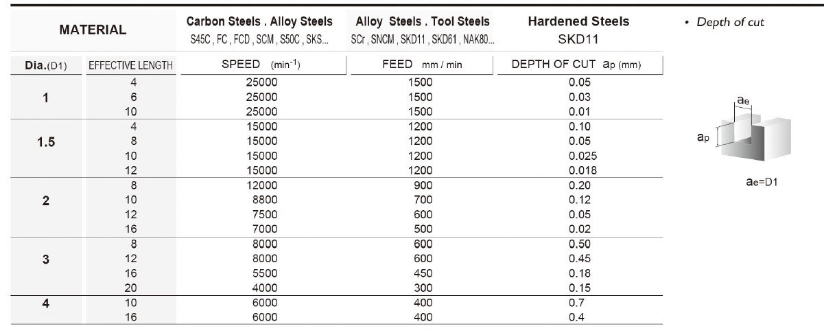 Vysoce přesná fréza s dlouhým krkem určená pro obrábění detailních částí, v úzkých a hlubokých prostorech. Díky průměru od 1,0 do 3,0 mm a délce 6–25 mm je ideální volbou pro jemné frézovací operace v tvrdých materiálech. Díky dvoubřitému provedení a pokročilému povlaku TiaLN s tepelnou odolností do 800 °C je ideální pro efektivní obrábění běžné oceli.