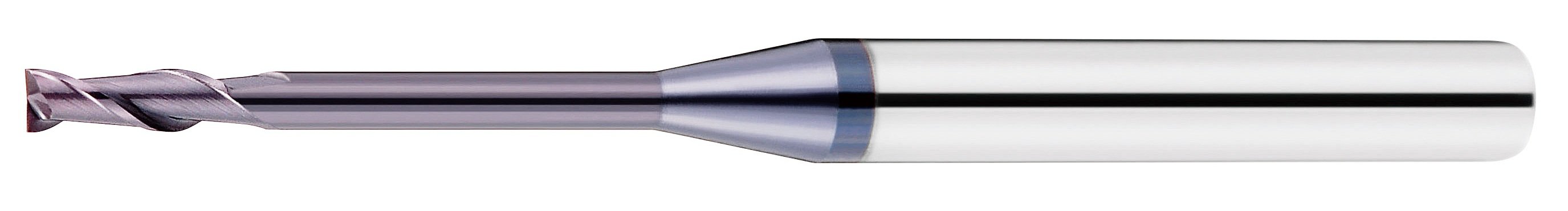 Vysoce přesná fréza s dlouhým krkem určená pro obrábění detailních částí, v úzkých a hlubokých prostorech. Díky průměru od 1,0 do 3,0 mm a délce 6–25 mm je ideální volbou pro jemné frézovací operace v tvrdých materiálech. Díky dvoubřitému provedení a pokročilému povlaku TiaLN s tepelnou odolností do 800 °C je ideální pro efektivní obrábění běžné oceli.
