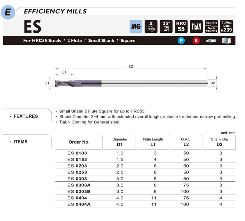 Základem je také kvalitní materiál se speciálním výbrusem pro obrábění materiálů do tvrdosti 55HRC. Vzhledem k náročnosti obrábění a tvrdosti obráběného materiálu je pro frézy používán substrát o velikosti zrna 0,6µm s extrémně vysokou odolností vůči lomu a současně vynikající odolností vůči opotřebení.