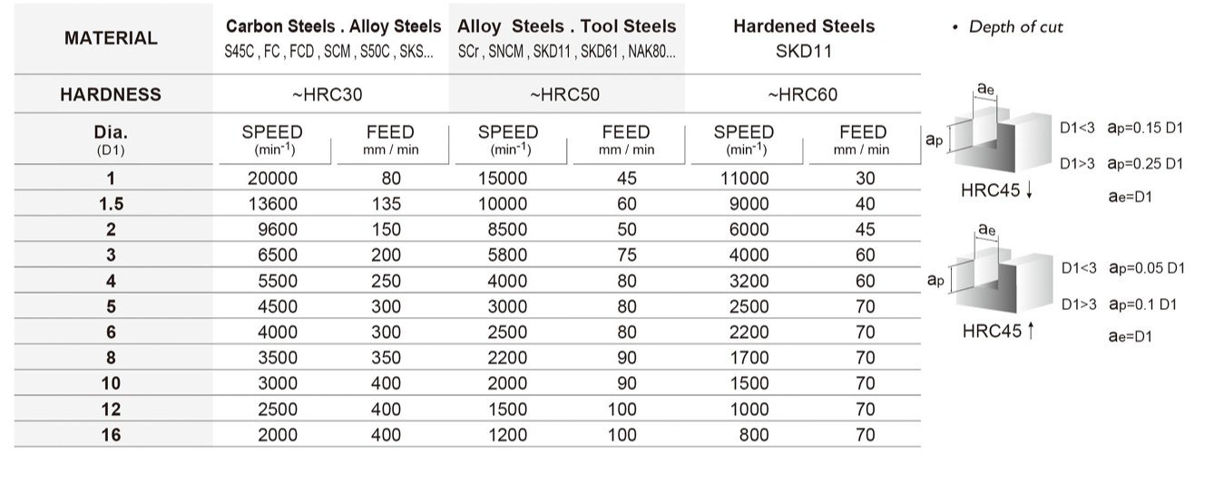 Základem je také kvalitní materiál se speciálním výbrusem pro obrábění materiálů do tvrdosti 55HRC. Vzhledem k náročnosti obrábění a tvrdosti obráběného materiálu je pro frézy používán substrát o velikosti zrna 0,6µm s extrémně vysokou odolností vůči lomu a současně vynikající odolností vůči opotřebení.