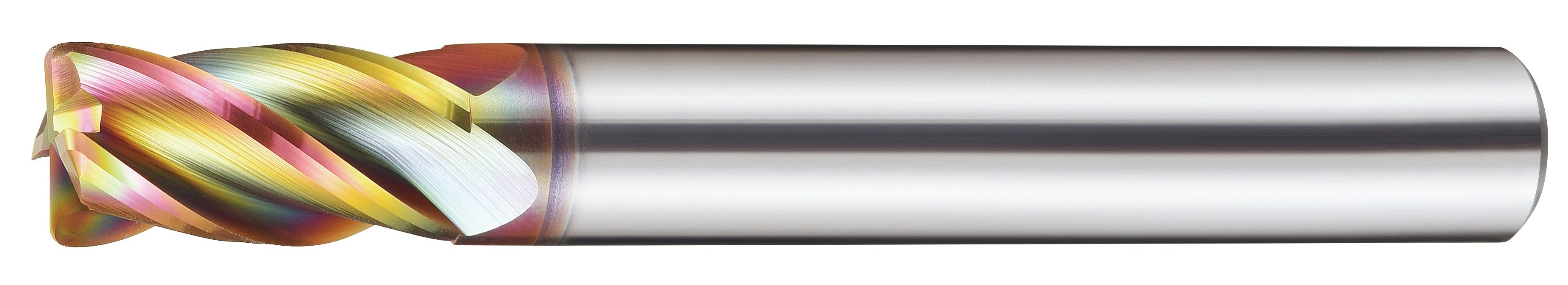 Čtyřbřitá fréza s rohovým rádiusem pro materiály do HRC65. Použití pro kalenou ocel, litina, nízko a vysokolegovanou ocel, litou ocel a nástrojovou ocel.