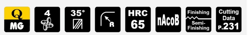Základem je také kvalitní materiál se speciálním výbrusem pro obrábění materiálů do tvrdosti 65HRC. Vzhledem k náročnosti obrábění a tvrdosti obráběného materiálu je pro frézy používán nejjemnější substrát o velikosti zrna 0,2µm s extrémně vysokou odolností vůči lomu a současně vynikající odolností vůči opotřebení.