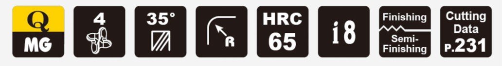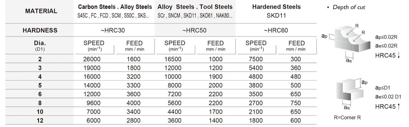 Základem je také kvalitní materiál se speciálním výbrusem pro obrábění materiálů do tvrdosti 65HRC. Vzhledem k náročnosti obrábění a tvrdosti obráběného materiálu je pro frézy používán nejjemnější substrát o velikosti zrna 0,2µm s extrémně vysokou odolností vůči lomu a současně vynikající odolností vůči opotřebení.