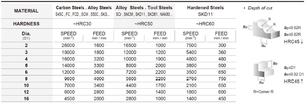Základem je také kvalitní materiál se speciálním výbrusem pro obrábění materiálů do tvrdosti 60HRC. Vzhledem k náročnosti obrábění a tvrdosti obráběného materiálu je pro frézy SRB používán substrát o velikosti zrna 0,5µm s vysokou odolností vůči lomu.
