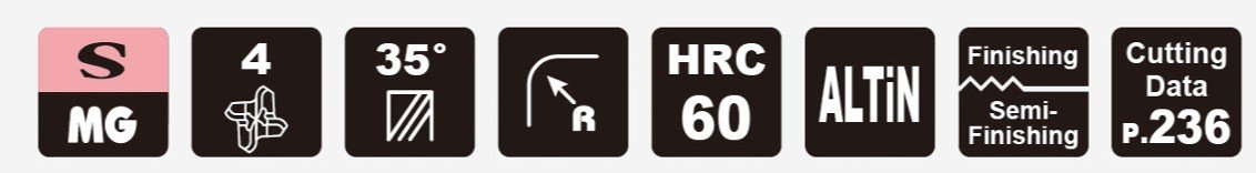 Základem je také kvalitní materiál se speciálním výbrusem pro obrábění materiálů do tvrdosti 60HRC. Vzhledem k náročnosti obrábění a tvrdosti obráběného materiálu je pro frézy používán substrát o velikosti zrna 0,5µm s vysokou odolností vůči lomu a současně vynikající odolností vůči opotřebení.