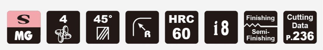 Základem je také kvalitní materiál se speciálním výbrusem pro obrábění materiálů do tvrdosti 60HRC. Vzhledem k náročnosti obrábění a tvrdosti obráběného materiálu je pro frézy používán substrát o velikosti zrna 0,5µm s vysokou odolností vůči lomu a současně vynikající odolností vůči opotřebení.