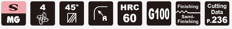 Vysoce přesná fréza s rohovým rádiusem a čtyřmi břity vhodná pro kalenou ocel, litinu, nízko a vysokolegovanou ocel, litou ocel a nástrojovou ocel. Technologie povlakování G100 se vyznačuje tepelnou odolností a to do 800 °C.