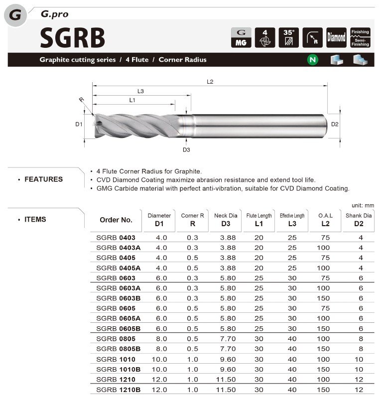 Vyrobena z karbidového materiálu GMG s výbornými antivibračními vlastnostmi, ideální pro nanášení CVD diamantového povlaku a práci v náročných podmínkách.