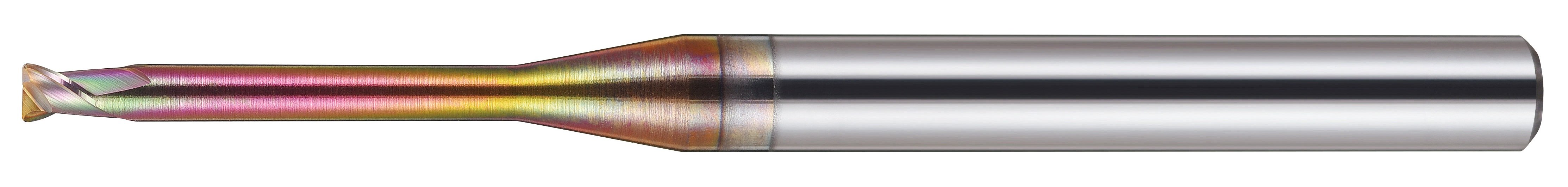 Dvoubřitá fréza s dlouhým krkem a čtvercovou stopkou je určena pro obrábění kalené oceli až do tvrdosti HRC65. Nabízí průměry v rozsahu 1,0–3,0 mm a efektivní délku řezu 4–20 mm.
