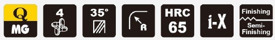 Fréza je opatřena novým povlakem i-X, který zajišťuje vynikající tepelnou odolnost až do 1100 °C a vysokou odolnost proti tření. Vzhledem k vysoké náročnosti obrábění a tvrdosti opracovávaného materiálu je použit jemný karbidový substrát se zrnem o velikosti 0,2 µm, který poskytuje výjimečnou odolnost vůči lomu a zároveň vynikající otěrovou odolnost.