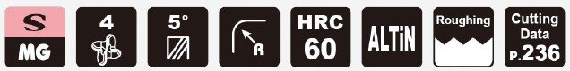 Úhel šroubovice 5° a délka břitu 0,5D pro těžké profilové frézování. Vzhledem k náročnosti obrábění a tvrdosti obráběného materiálu je pro frézy SRP používán substrát o velikosti zrna 0,5µm s vysokou odolností vůči lomu.