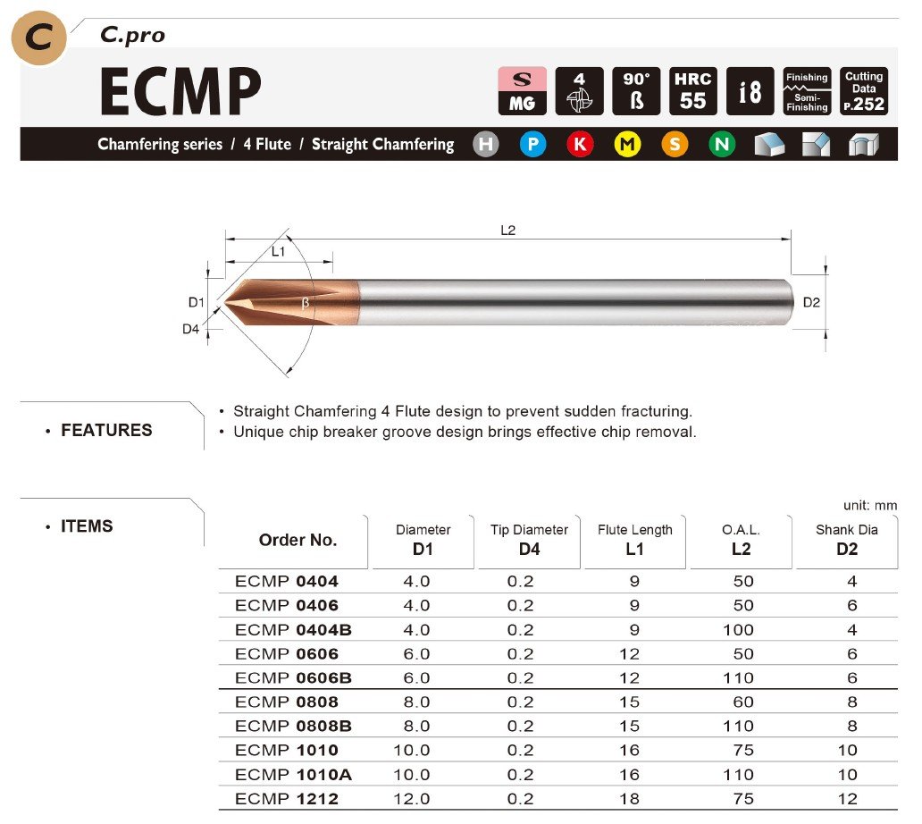Vysoce výkonná fréza s přímým srážením hran a čtyřbřitou konstrukcí zajišťuje maximální odolnost proti náhlému zlomení při obrábění.