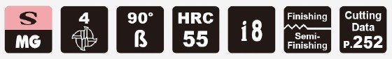 Fréza je opatřena odolným povlakem i8, který umožňuje práci při teplotách až do 900 °C a je vhodný pro obrábění materiálů o tvrdosti až 55 HRC.